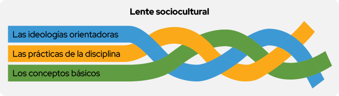 El Marco ALE resalta las oportunidades lingüísticas y académicas de los estudiantes bi/multilingües who are learning Spanish. Its components are reflected in a braid — a trenza that lives in a lente sociocultural. Los componentes del Marco ALE son las ideologías orientadoras, las prácticas de la disciplina y los conceptos básicos.